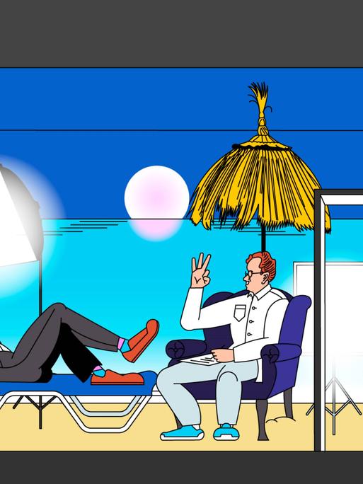Ein Großteil der Deutschen ist zu erschöpft, um sich wirklich zu erholen. Pandemie, Krieg, Inflation, Klima – die Multikrise hat uns ausgelaugt. Das neue Urlaubsgewährungsgesetz verlangt ein ärztliches Attest, das die Urlaubsfähigkeit bescheinigt. Wer keine medizinische Urlaubsgenehmigung hat, wird – um die Urlaubskompetenz wiederzuerlangen – in eine sogenannte „Pre-Holiday-Klinik“ überstellt. Sven Schmitz muss deshalb seinen Namibia-Urlaub abblasen und findet sich im „Haus Müßiggang“ wieder. Malerisch am Südhang des Oberen Wendelstocks gelegen, beherbergte das Kurhaus Freigeister wie Igor Stravinsky und Literaten wie Thomas Mann. Und so begibt sich Sven in diese skurrile wie verlockende therapeutische Maßnahme. Erste Übung: künstliches Sonnenbad in Strandkulisse.